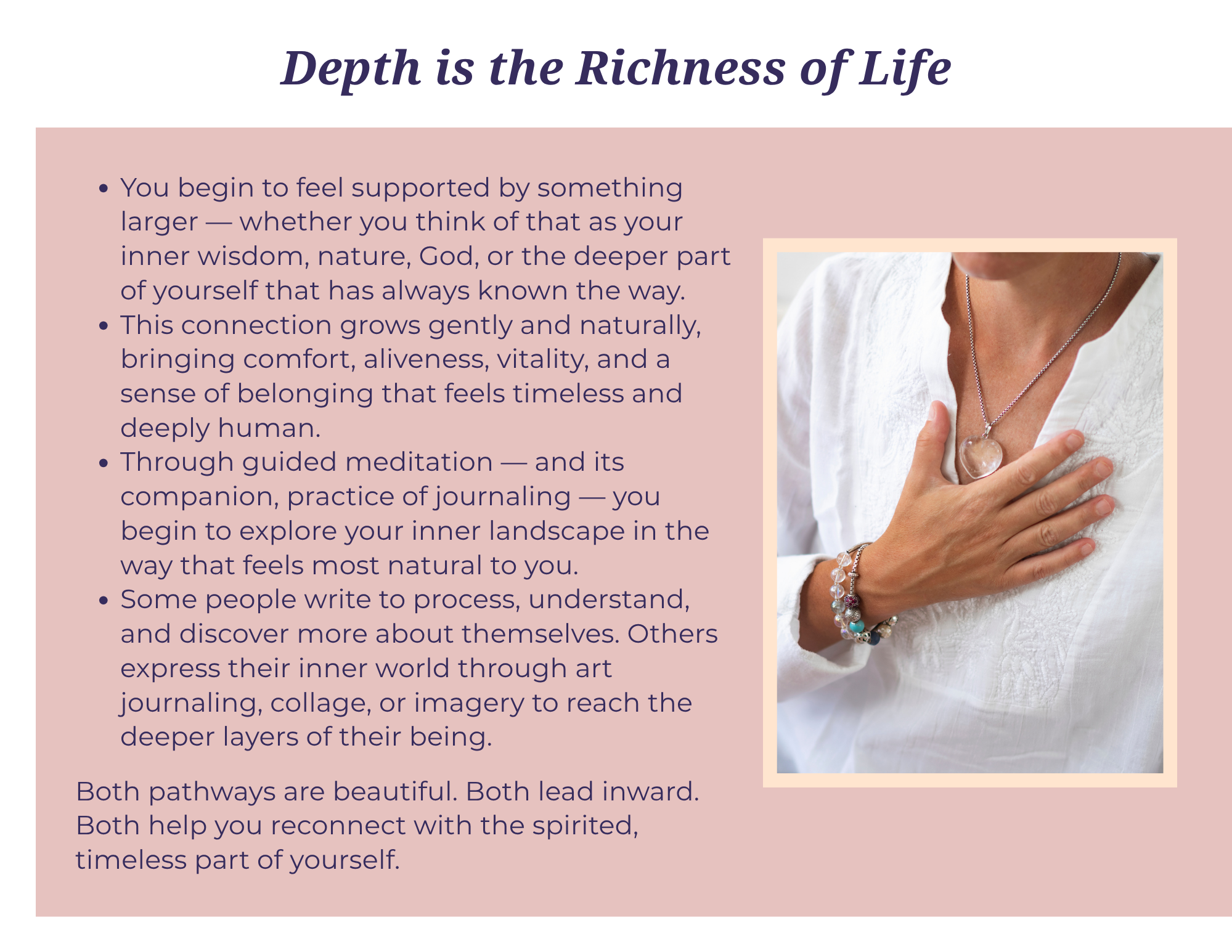 Our bodies want to cooperate with us, our Soul and spirit is an ally. Everything in nature is in harmony. Why not us? Why not you? Begin living in harmony from the inside out.