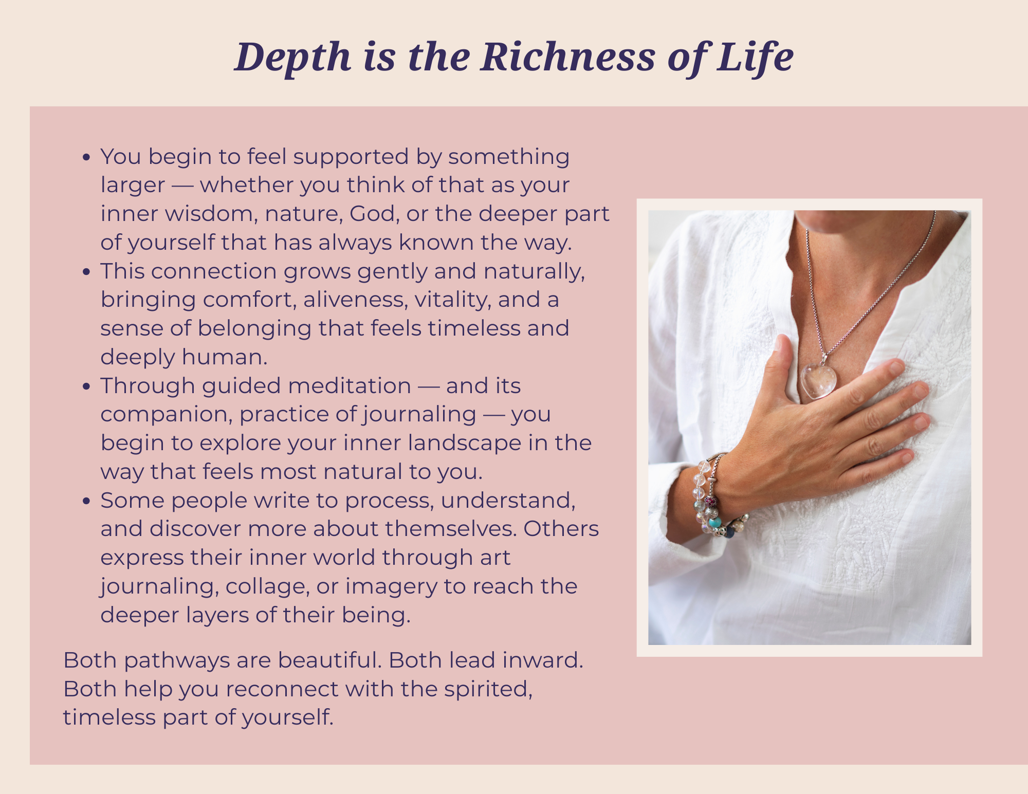 Our bodies want to cooperate with us, our Soul and spirit is an ally. Everything in nature is in harmony. Why not us? Why not you? Begin living in harmony from the inside out.